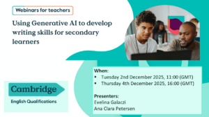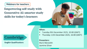 Recordad que, tras asistir a cualquiera de los webinars de Cambridge English, recibiréis un certificado de asistencia y acceso a materiales de apoyo gratuitos. Además, en caso de que no hayáis podido asistir a alguno de los seminarios anteriores, tenéis a vuestra disposición las grabaciones en el Canal de YouTube de Cambridge English.